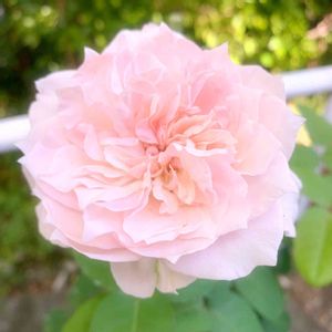 クロッシェさんがポツンと咲きました ようやく我が家にも秋薔薇ぽいお顔の子です ベビーピンクと優しい香りに癒されます
