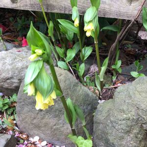 おはようございま〜す♬😊 ⚪︎5月4日(月)🎌 ⚪︎杜の都 仙台 ⚪︎日の出:4:36 ⚪︎天気:☁️ ⚪︎気温:15.9℃ ⚪︎風:北東1.1m/s 我が家の山野草🌱🌱 キバナホウチャクソウ💛 咲き始めは上を向いてますが 咲き進むと下向きにになります・・・ ⚠️全草に毒性があるらしく 直接肌に触れないようにとのこと...😨 📖豆知識 チゴユリと自然交配することがあるそうです🤔 📷:2020.4.20 🌧 皆さ〜ん今日もお元気で🤗