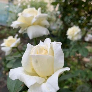 いつもありがとうございます☺️ HT ロイヤルプリンセス メイアン作 クリームホワイト色 敬内愛子内親王殿下の誕生を 祝って捧げられたバラです🌹 とても上品のあるバラ🥰 今年は頑張って咲いています😆