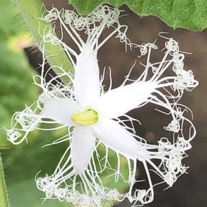 たけのこTOKOさんのヘビウリの投稿に刺激されアルバムから引っ張ってきました。 この花はカラスウリに似ています。でも昼間に咲いています。 綺麗でしたよ🤩 ヘビウリの花です。 別名: スネークメロン ヘビウリは生でも加熱しても美味しくきゅうりに似て、淡白でシャキシャキッとした食感らしい。 機会があれば食したいです。 1️⃣2️⃣3️⃣ヘビウリの花 2022.8.19 4️⃣5️⃣ヘビウリ 2025.8.15 2023.8.11 佐倉くらしの植物苑