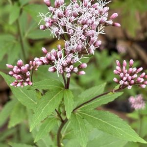 フジバカマ(藤袴) [今日のお花] 秋の七草の一つ 1️⃣2️⃣フジバカマ 2024.10.19 佐倉くらしの植物苑 葉は深く三裂 3️⃣マルバフジバカマ 2024.10.22 京成バラ園 4️⃣5️⃣ヨツバヒヨドリ 2024.7.13 川村記念美術館の蓮池のふち 葉は茎から輪生状に3〜5枚出ている。