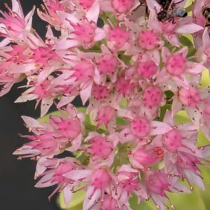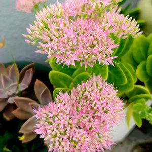 今日のお花 ⁑ ベンケイソウ🌸 ベンケイソウ×2 サンゴバナ(珊瑚花)=フラミンゴプランツ ヤナギバルイラソウ(柳葉ルイラ草)×2 弁慶草 ⚫︎⚪︎⚪︎⚪︎⚪︎