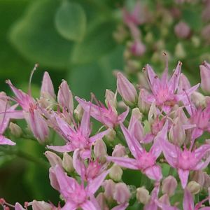 こんばんは~😆 今日のお花~弁慶草~です💠 7月中旬のpic ですが、 ご近所で咲き始めていました。 ピンク色の小さな花が、 満開の頃に📱しようと思って いたのに、それっきりに…残念です💧