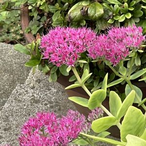 こんばんは😊🌃 今日のお花 💠ベンケイソウ💠 ①②オオベンケイソウ(大弁慶草) ベンケイソウ科ムラサキベンケイソウ属 今日出会ったお花 ③💠マリーゴールド💠 ④💠ヒャクニチソウ💠 ⑤💠ランタナ💠 5枚あります🌿 遅くなりましたが 見てくださいね😊🎶💕︎