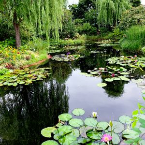 睡蓮と柳 (o^^o)地中美術館、地中の庭にて🌿燦々と降り注ぐ陽光のもと、いろいろな緑色に見惚れてしまいました👀