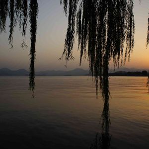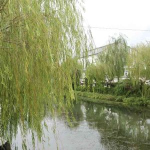 倉敷美観地区の夕暮れ時の柳、とてもきれいでした (o^^o)