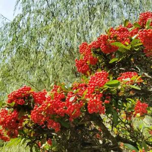 トキワサンザシ ピラカンサかと思ってた😲 ピラカンサとはギリシャ語の 炎+ 刺が語源。 秋の青空に たわわな真っ赤なピラカンサの実が映えますね😺