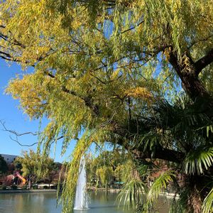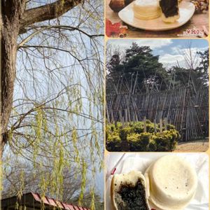 冬枯れの公園で揺れる柳🌿 パクつくは〜今月の土日限定『あじまん』 もっちもち(*`ڡ´●)