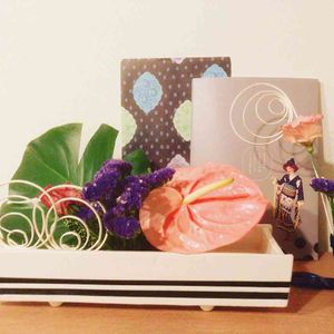 フラワーアレンジメントpart4 お正月用🎍アレンジメント活けました🤗 花材💐 菊(ピンポンマム) バンダ系蘭(レナンセラ) 松五葉松(ゴヨウマツ) 氷室杉(ヒムロスギ) リュウカデンドロン) 千両(センリョウ) 蝋梅(ロウバイ) 柳(ヤナギ)