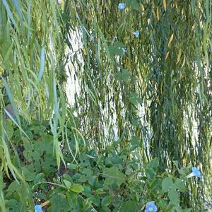 六角堂柳です。 水色の水盤を池に見立ててみました。
