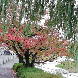 ヤナギ科のシダレヤナギ*‧・❁˚.・*❁ ゆるゆる揺れる 暖簾越しの ちらちら照葉で 冬を足止めヽ( ̄  ̄*)チョイマチ 後少し紅葉を楽しませてね(ㅅ•᎑•)