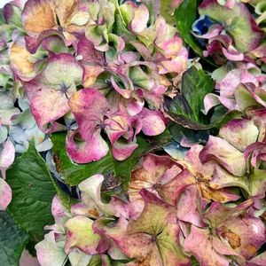 先日、ホームセンターで出会った紫陽花。 ちょっと葉っぱが傷んで、花も少し茶色い・・・⁉️ おつとめ品になってて、迷って帰宅🏠️👣。 秋色紫陽花っぽく、アンティークな良い感じ、ヤッパリ買おう‼️と出直したら・・・😂😭 もう、売れてました😱決断力の無さに我ながら情けない😂🤣