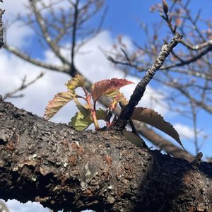 1、2枚 カンヒザクラ 「琉球寒緋桜」 バラ科サクラ属 落葉小高木 一重 カンヒザクラとオオシマザクラとの交雑種 牧野植物園 1/26 こんにちは こちらは琉球寒緋桜です🌸 冬芽が一つだけ開いてました❤️ カンヒザクラは蕾が釣鐘状で緋紅色に対し、こちらは平開し桃紅色なんだそうです🌸 最近はカンヒザクラとの交雑種、自然交配や栽培種がとても人気がありますね🌸 ソメイヨシノより早く咲き、春を待ち焦がれているからなんですね🌸 以前はヒカンサクラ「緋寒桜」と呼ばれてましたがヒガンザクラ「彼岸桜」と間違い易いとひっくり返してカンヒザクラ「寒緋桜」呼ぶようになったんだとか、漢字で書けば全然違うんだけどね🌸