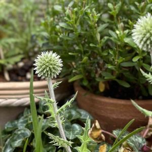 “エキノプス アークティックグロウ(瑠璃玉アザミ)” Echinops sphaerocephalus Arctic Glow まんまるつんつんの個性的な宿根草 そのうち花軸が赤色になるよ 蒸れに注意⚠️だとか… 大丈夫かなぁ🤔
