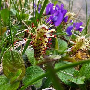 いつまでも佇んでいたい北岳稜線のお花畑 ①オヤマノエンドウ、チシマアマナ ②ハハコヨモギ ③レンゲイワヤナギ ④イワウメ ⑤タカネツメクサ 2024.7.7撮影