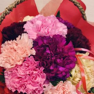 週替りのアレンジ17 次の日曜は母の日ですね💐 そこで今週はカーネーション💕 色とりどりのカーネーションです😄