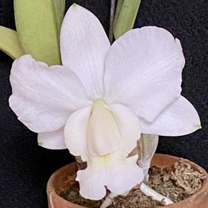 カトレア交配種 札落ち 品種名不明 花;7x8cm 丈;25cm ペタルがオーバーラップしており、全体が丸い花の様に見える可愛い花です。 名前が分からなくなって、残念です。