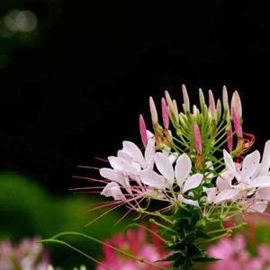 色とりどりのクレオメ😊 キャンドルのまわりを舞う蝶のようです😊