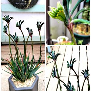 こんばんは😄👋 ご近所のサボテン屋さん 冬期休業明けて開店したので行ってこのカンガルーポー 一目惚れしてお迎えしちゃいました〜💕 これに合う鉢もチョイスしてくれて植替えもしてもらい育て方も教えてもらいました✌️不思議な色とお花良いよね〜💕 自宅の小さなお庭山野草やムスカリ咲いて可愛いです💕
