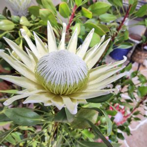 こんにちは😄👋 ご近所のサボテン屋さん に行ったらキングプロテア置いてあって圧巻😍✨ 大きな花が咲いていました〜💕 欲しいけど置き場ないし高いの買っても育てられないから時々行って眺めるだけだけど良いよね~💕 行く度に癒される〜🥰
