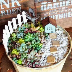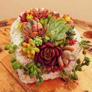 ワークショップで作った多肉箱庭を寄せ直ししました。 WSでは4つ程の多肉を使いましたが、寄せ直しはチマチマ寄せにしました💚 白い石とタイルは固めてあるので、そのまま使用😊