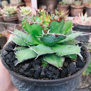 アガベチタノタフィリグリーの小株。いい感じになってきた😁