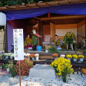 菊人形。 昨年に引き続きメンテナンス中でした。 信長の菊人形をおじさんらがきれいにしてました。 (ФωФ)今年は、信長、光秀、道三でした。