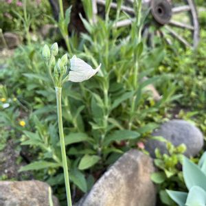 今日のお花オダマキ 今年はまだつぼみなので昨年のホワイトバローの写真を🤍