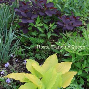 ホスタダンシングクイーンと、スモークツリーのはっきりした組み合わせ✨
