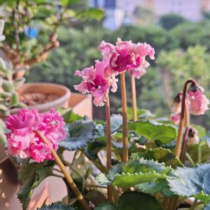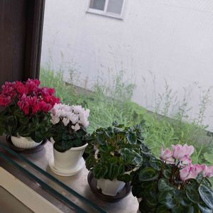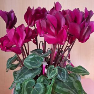 今日のお花、 大好きなシクラメン🌸 前列は、2・3年生 秋頃、満開になり 今は、葉っぱ🌱もりもり中です。 後ろの列は、最近の子達 🌞なるべく涼しい場所へ🍀💕