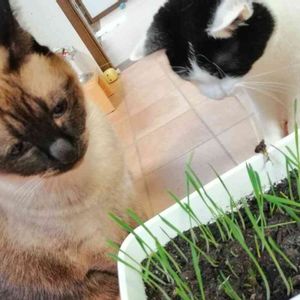 我が家のマルプー女の子2匹の猫草です😄 種まくと直ぐに生えてくるから有り難い😆