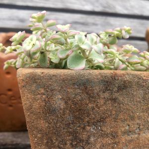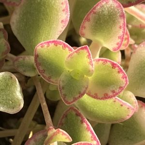 おはようございます😊 久しぶりの曇り空☁️箱根駅伝の皆さん、頑張って💪 リトルミッシー🌿北アメリカ西部原産のベンケイソウ科クラッスラ属の多年草の多肉植物。淡緑色にクリーム色の覆輪が入りピンクの縁取りが印象的😍気温が高くなるとピンク色の模様が消えてしまいます🌿