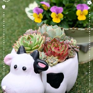 🐮 牛の日 🐮 1⃣見切りっ子のヒヤシンスが入っていた牛さん🐮の鉢 先日吹っ飛んだ多肉さんをIN バラけた多肉さんはあと少しあるので今日植え替え終わらせなきゃ💦 2️⃣外置きになって赤いステッチが少しづつ出てきて可愛いリトルミッシー💓 3️⃣女雛錦はほんのりピンクの縁どり🎀💕💓💗 🏷錦の日