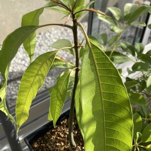こんにちは♪ 今日は 我が家のマンゴーの木?を投稿しま〜す🤗 数年前に美味しく頂いたマンゴー🥭の種 やっとここまで成長してきましたよ🤭🎵 2枚目は 2022年?に投稿したpic 実が出来ることは 期待してませんが 枯れずにここまで成長してくれて嬉しいです☺️💕
