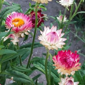 【コロロ フランボワーズ】 (ムギワラギク) 📷玄関ポーチ 五分咲きといったところでしょうか(^^) このくらいの咲き具合がとても個性的でいちばん好きかも(^^*)🍊