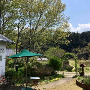 ちょっと和テイストコーナー。 ここは割と日陰なのでご陽射しが強い日等は 多肉のカゴを避難させたりします 柿の木が間もなく茂ってきたら もっと暑さを凌げるかも🔆🔅⚡️ 最近は良い声の小鳥囀ってるなぁと見上げると シジュウカラが鳴いています 気持ちよさそうに、あれは歌っているのかな~(。・ө・。)~♪ あっ、今はキジの鳴き声が聞こえます(∩・ω・👂