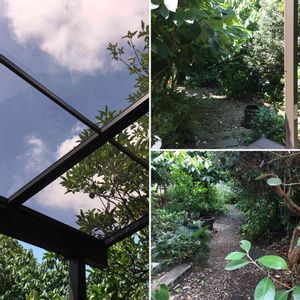庭造りをして3年が過ぎて植物達かだいぶ馴染んで来ました😄🌿🌿🌿 駐車場からみた庭です🎵