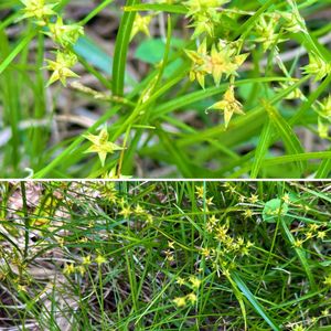 湿原の中に、お星さま⭐️みたいな小さいクサがいっぱい生えています。 帰って調べてみたら、カヤツリグサ科スゲ属の中の、ヤチカワズスゲのようです。ミタケスゲの半分以下という感じです。ほんと星がキラキラしてるみたいです✨ 高山性変種のカワズスゲというのもありますが、小穂の作りがもっと貧弱な気がします。
