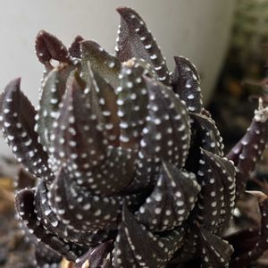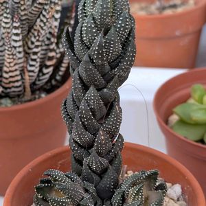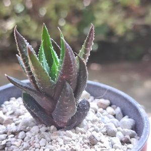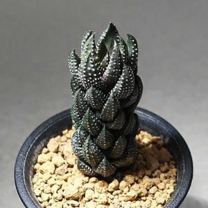 「ハオルチオプシス 九輪塔錦」 「ハオルチオプシス」は光に当てると黒くなります ですが「九輪塔錦」はこの重厚感が大好きです!