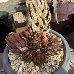 つい先日まで、昼は汗ばむ気温でしたが、さすがに11月… 急に寒くなり、去年同様、秋を感じずに冬になっていきそうな福岡です・-・꧞ 自身の今月1枚目のpicは、タグを見返すと、2年ぶりにpicのハオルチア 九輪塔。 外管理にして以来、あまり愛でてやれていませんが、子株もつけて地道に生長しているようです( ; ᐛ ) 時期的にもまだ間に合いそうなので、株分けしてあげないといけませんねσ(^_^;)