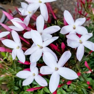 樹高約2m、ようやくロイヤルジャスミンの開花が始まりました😅 暑すぎるので、咲き続けるのは難しいかもしれません😅