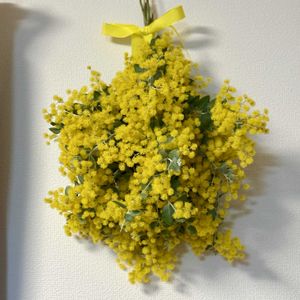 お庭のパールアカシアで、ただまとめただけのミモザの簡単スワッグを作りました。一日たったら(2枚目)意外とスカスカ…もう少しいっぱいまとめればよかったかも。 我が家では毎年新しいスワッグを作って、一年飾って、古いものは御役御免となります。 ネットを検索すれば作り立ての美しいリースやスワッグの画像はたくさん見る機会があると思うけど、一年たった状態ってなかなか目にすることがないと思うので、捨てる間際の古いスワッグを載せておきます(3枚目) 新しいスワッグと比べたらもちろん見劣りはするけど、黄色は残るし、グレーの葉もアンティークな雰囲気になりますよね。 一年後のミモザの参考にしていただけたら幸いです。