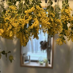 パールアカシア 満開になってたので、花をカットしてスワッグ作って、友達にも何個かあげて我が家にもぶら下げました💛✨