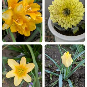 1度に 咲いて😂 こうなりました😊✨ 1枚目〜 上段 左から モラエア アリウム トリケトラム イキシア 下段 左から シレネ 白玉草 セリンセマヨール タラの芽 コシアブラ うど 2枚目〜 アジュガ (十二単) ピンク と 白 3枚目〜 オダマキ たくさん🤭🥰
