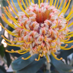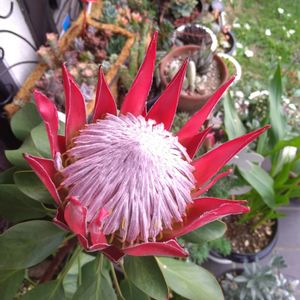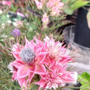 お出かけ先で見つけたプロティアジュリエット💕咲いたらきっと可愛いと思うのです😃いつの日かお迎え出来たら…❤️ ネットから。 プロテア ジュリエットは、樹高、幅ともに1.5m前後と、プロテアの中では非常にコンパクトなサイズです。 日当たりの良い場所で、排水の良い土を好みます。 水遣りは乾いてからたっぷりと与えます。 耐寒性が弱いので庭植えは関東地方以南の太平洋側、冬場は根元に腐葉土などでマルチングし、防寒してください。 花持ちがよく切花として多く流通し、ドライフラワーとして大変人気です。 南アフリカのケープ地方の原産で、南アフリカの国花です。