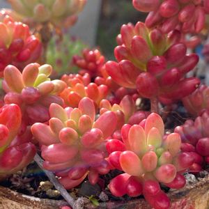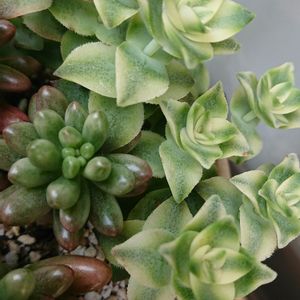 オーロラ この時期は優しいピンクになってほんとに可愛い! 今年はさすがに家の窓辺では入りきらなくなり、ベランダに簡易型の温室を設置しました エケベリアやセダムは強いから大丈夫かなと昼間はベランダ夜は温室でしのいでもらってます! 中の窓辺で育てるより色づきがいいですね!