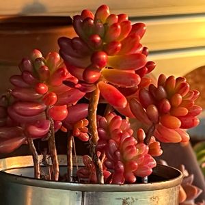 ♥️真っ赤なオーロラ♥️ 🏷つぶつぶの日 🏷真っ赤な火曜日 ウチのオーロラ姫の紅葉が進んで、美しすぎて… 眩しっ ⸝⸝> ̫ <⸝⸝ つぶつぶ全部がいいお色… 真っ白な鉢に植えて良かった♡ 只今、絶賛日光浴中〜 おひさま☀キラキラなので、 気持ちが良さそう (*ˊ˘ˋ*)。♪:*° 朝晩の冷え込みにも耐えて優秀なオーロラ姫です でも、 朝晩は、とんでもなく寒いんですよね💦 毎日、氷点下 :;((•﹏•๑)));:ブルブル 多肉の冬越しにドキドキですけど とりあえずお外で頑張ってもらってます 夕方早めにプチプチでカバーしてるけど 大丈夫かなぁ(⚭-⚭ ) 大寒波到来で大雪地方の方々、くれぐれもお気を付け下さい