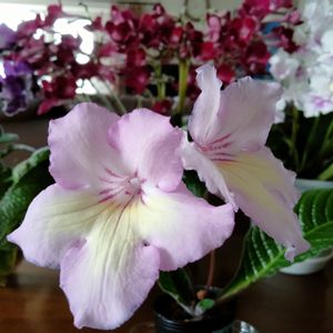 ストレプトカーパス・マリデール 赤穂ジェスネリアードからの新しい苗 可愛い色合いで、点々のスジが伸びて新しい💖