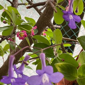 ストレプトカーパスとアセロラの花のコラボ ムラサキとピンクの花かわいい💕