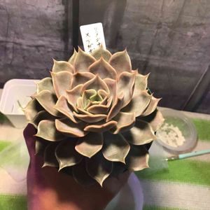 いつの間にか、我家で1番大きくなってる名無しさん😅 昨年10月に投稿した、我家の大きいBEST5(笑)には無かった😆 薬剤で汚くなってるけど、秋色になったら名前を思い出すかな🤔 追記 葉の下から札が出てきて、名前判明しました🙇♀️ リラシナ×アガボイデスでした😆